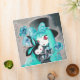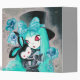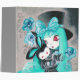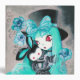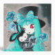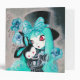 Fille githic de kawaii doux avec des cheveux de turquoise, utilisant un casquette supérieur de style victorien, et étreignant son lapin de noir d'animal familier.