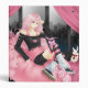 Une fille d'anime s'asseyant sur son fauteuil poire avec toute son image vivante de plushies de lapin à l'origine appelée "mon monde" le monde qu'elle connaît, avec les couleurs et le monde elle fait pas (en dehors de la fenêtre) sans couleur ma mascotte D.B étant le lapin qui se repose sous ses illustrations originales et caractère de coude par Diasuu (je)