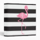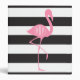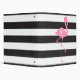 Un cadeau comportant une illustration d'une silhouette rose de flamant. Personnalisez avec votre monogramme à l'intérieur de cercle sur le corps du flamant. L'arrière - plan est les rayures noires et blanches.
