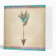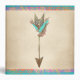 Une flèche rustique avec floral et turquoise-plume fletching sur un fond beige texturisé, avec l'équilibre tribal au néon coloré de motif.