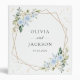 Ajoutez une touche personnelle à votre fête mariage avec ces objets de fête élégants et mémorables ! Le design présente des fleurs d'aquarelle bleu et blanc, de la verdure, des confettis dorés et un cadre doré sur un arrière - plan blanc.