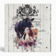 Mignonne, vache angus et son veau derrière un bouquet floral violet. Campagne française, vintage, victorien, lettrage sur un fond de panneau en bois blanc usé. Parfait pour une ferme rustique ou un livre de cuisine de famille de style campagne française, scrapbook ou album photo.