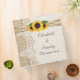 Elégante dentelle blanche, ruban, tournesol et burlap wedding planner/orgaizer classeur avec dentelle blanche sur burlap naturel beige ou hessian avec deux rubans satinés croisés et tournesols. Texte en marron. Notez que dentelle, burlap et tournesols sont tous "imprimés" et non de vrais tissus ou fleurs. Ce design élégant, sophistiqué et romantique à l'essence rustique fait partie d'un ensemble mariage et est parfait pour un pays chic ou western automne/mariage avec une palette de couleurs neutres.