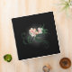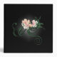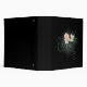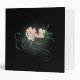 Un classeur avec l'illustration de quelques délicates fleurs roses en fleurs avec des tourbillons verts et des feuilles sur un arrière - plan noir avec un peu de gris clair autour des fleurs pour accentuer et éclairer.