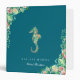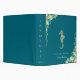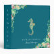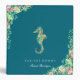 Elégante aquarelle de forme botanique botanique fleurie de cheval de mer avec bordures botaniques assorties sur bleu profond de l'océan, classeur personnalisé.