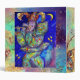 Couleur colorée, capricieuse et éclatante aquarelle en rouge, bleu, vert, jaune or, rose, fuchsia couleurs inspirées du Carnaval de Venise et Commedia dell'Arte. Joueur de flûte expressif dans la nuit, lumière lune et un chat bleu.Ce design cool et artistique est aussi un cadeau magnifique pour les occasions spéciales, anniversaires, mariages, noël, vacances, mardi gras, saison carnavalesque.