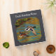 Male and female mallard ducks in flight over a golden pond, water rippling to reflect the colors of the background autumn foliage glowing in the sunlight. Accented by a masculine gray patterned background just right for the outdoorsman you know.