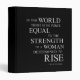 " En ce monde il n'y a aucune force égale à la force d'une femme déterminée pour se lever". La citation de motivation inspirée, dans une conception typographique élégante de noir et outre des couleurs blanches, se perfectionnent pour votre bureau, votre gymnase ou votre maison. Laissez ce soulèvement positif d'énonciation votre jour. Fait également le cadeau idéal pour la mère active, le petit entrepreneur, ou n'importe quelle femme travaillant dur pour changer leurs circonstances et pour surmonter l'adversité en périodes difficiles.
