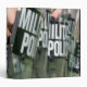 Formation de contrôle anti-émeutes avec barricade.
