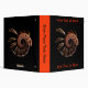 Une image fractale multicolore (rouge, jaune et orange) en spirale, ressemblant à un oiseau ou à un dragon plumé, sur un arrière - plan sombre. Customisez en ajoutant votre propre texte à deux endroits sur le devant, et un autre sur la colonne vertébrale.