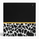 Gardez vos disques en ligne avec ce classeur de boutique mode griffé noir et blanc à la mode avec l'image d'un ruban jaune ceinturé attaché à l'arc chic. Personnalisez ce design poster de animal élégant en ajoutant le nom de votre entreprise et de votre site Web. Image imprimée plate, PAS l'arc réel.