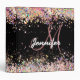 Parties scintillant holographique tendance Monogramme Nom Black 3 anneau classeur