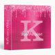 Classeur Girly Hot Pink Glitter Drips Glam Monogram