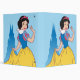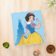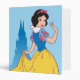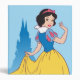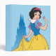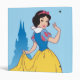 Blanche Neige regardant en arrière par-dessus son épaule avec la silhouette du château dans l'arrière - plan.