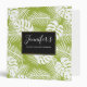 Un classeur personnalisé avec un motif répétitif de grands feuilles de palmiers sur un arrière - plan vert olive. Un rectangle noir avec une bordure dorée superposée avec vos détails personnalisés à l'intérieur.