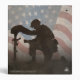 Honore les morts avec un dernier salut. En l'honneur de nos membres déchus des forces armées. Le soldat s'agenouille devant la tombe de son camarade déchu. Dans l'arrière - plan le drapeau des Etats-Unis.