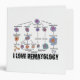 Les hématologues, les oncologues et d'autres spécialistes qui travaillent avec les globules sanguins apprécieront ce classeur éducatif qui présente la lignée des globules ainsi que la légende suivante dans Love Letters font : "I Love Hematology".