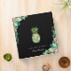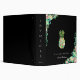 Forme d'ananas botanique floral aquarelle élégante avec bordures botaniques assorties sur fond noir, classeur personnalisé.