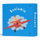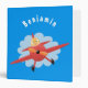 Cet oiseau heureux fuit un avion rouge ! Dessiné dans le style d'illustration de dessin animé mignon!
