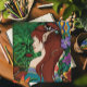 Un homme vert et auburn cheveux soi-même dans un cadre de nature fleurie