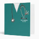 Un carnet d'infirmières, un carnet de souvenirs ou un classeur d'école de soins infirmiers avec des gommages à thème médical et un stéthoscope. Modifier le texte pour ajouter le nom.
