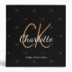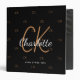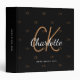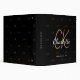 Un élégant classeur pour l'école, le bureau à la maison et les affaires. Fond noir, texte blanc et doré. Personnalisez-le avec vos initiales de monogramme et votre nom. Vos lettres de monogramme sont utilisées comme motif de fond. Le nom est écrit dans un style de lettrage à la main moderne. Lettres blanches.
