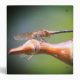 Mignonne libellule jouant co-pilote sur un ornement de pelouse. Photo nature par Susan.