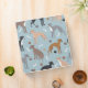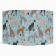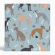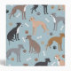 Les mignons chiens italiens Greyhound s'assoient et se tiennent avec des manteaux gris, faun, noir, rouge faun et bleu avec des os de chien éparpillés et des motifs de pawprints.