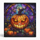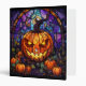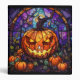 Transformez votre espace grâce à notre design exquis Jack-o-Lantern en verre satiné, alliant le charme de l'art du vitrail au charme d'Halloween.