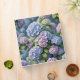 Des grappes de fleurs d'hydrangée vibrantes dans les tons bleu et violet avec des feuilles verts sur un arrière - plan doux et muet