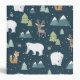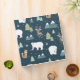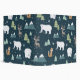 Un classeur avec un motif fantaisiste et festif. Ours polaires, rennes, arbres, renards et flocons de neige. Sur un arrière - plan vert foncé. Un cadre rectangle avec une fausse bordure en feuille d'or avec votre nom à l'intérieur.