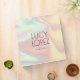 Design classeur élégant avec une texture imitation holographique colorée et une police calligraphique élégante.