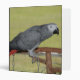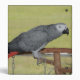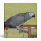 Congo African Grey Parrot dehors sur un stand de bois avec l'herbe vert pâle comme arrière - plan.