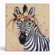 Cette impression présente un zèbre doux orné d'une couronne de fleurs | Par Victoria Borges