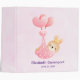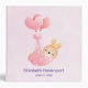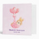 Un classeur avec une illustration adorable d'un petit lapin bébé brun portant une minuscule couronne dorée. Transporté par des ballons dans une couverture rose en forme de cœur.