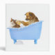 Chien et chat dans un tube de bain