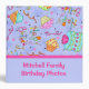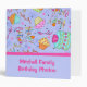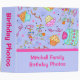 Cet album personnalisé "happy anniversaire" est idéal pour customiser des photos de fête d'anniversaire, scrapbooking, des recettes pour les anniversaires, des notes de planification de fête ou de nombreuses autres utilisations. Customisez les mots sur l'avant et les mots sur la colonne vertébrale pour titre propre. Entièrement personnalisable pour personnaliser. Beau carnet d'album pour des occasions spéciales d'anniversaire. L'art fantaisiste présente un gâteau d'anniversaire avec des bougies et des cupcakes, des mots fantaisistes "Joyeux anniversaire", des points et des banderoles sur un arrière - plan lavande violet aux couleurs vives de rose, rouge, vert, jaune, orange et bleu. Une bande rose fuchsia sépare la zone lavande de la zone design à l'avant. L'art est l'art original du concepteur de tissus Phyllis Dobbs. Cet album d'anniversaire mignon et amusant est disponible en plusieurs couleurs arrière - plans dans ce magasin.