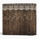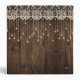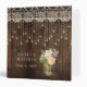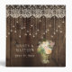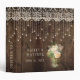 La conception rustique comportant le bois patiné de grange, dentelle, et lumières de ficelle avec un pot de maçon a rempli de pêche et fleurs et verdure d'or. Personnalisez l'avant et l'épine avec votre propre information.