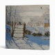 La peinture de Snowscape par Claude Monet impressionniste français dépeignant une pie noire solitaire était perché sur une barrière.