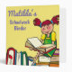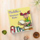 Le classeur personnalisé de travail scolaire/devoirs pour des filles avec une fille de bande dessinée s'est assis sur une pile d'indiquer de livres.