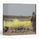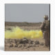 Les marines assurent la sécurité, tandis que la fumée marque une zone d'atterrissage avec déploiement.