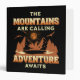 Grunge style rétro illustration extérieure avec "Les montagnes appellent, l'aventure attend" design de texte et décoration de scène de montagne