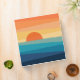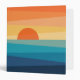 Illustration Abstraite du lever de soleil coloré (jaune, orange, bleu, turquoise) au bord de la mer avec des lignes diagonales et la décoration du soleil