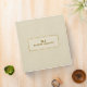 A sophisticated, light beige faux leather texture with a simple gold frame binder design, customizable with initials and name. A perfect choice for personal or professional record-keeping.
