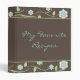 Organisez vos recettes préférées avec ce classeur de livre de recettes avec un riche arrière - plan mocha orné de fleurs fleuries crème et bleu clair. Le texte personnalisable vous permet de modifier les polices, de modifier les couleurs et les tailles du texte comme vous le souhaitez. Personnalisez pour vous-même de fait un grand cadeau.