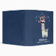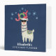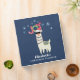 Classeur de Noël personnalisé avec une drôle d'illustration. Un mignon lama portant des lunettes de soleil noires et un chapeau de santa rouge. Portant également une couverture de style sud-américain et des pom-poms. Le mot Joy écrit au-dessus de sa tête dans une police festive et colorée. Des flocons de neige bleus tombent. Placez-vous sur un arrière - plan bleu. Design fantasque et amusant à thème de Noël.