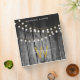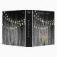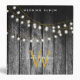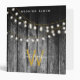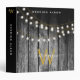 Un arrière - plan rustique en bois noir grange avec des lampes à cordes dorées suspendues avec monogramme or assorti. Un bois brûlé rustique de campagne avec une touche de glamour doré. Customisez le monogramme et faites-le vous-même. Un bel album de mariage qui peut être customisé avec votre texte et monogramme.