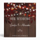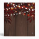 classeur mariage sur mesure avec lumières scintillantes rustiques et feuilles d'automne rouille sur arrière - plan de grange brun foncé. Idéal pour votre automne de nuit | pays rustique élégant | mariage à thème jardin extérieur.