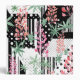 Lupines sur patchwork noir et blanc arrière - plan avec pois et rayures.