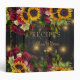 Fleurs rustiques tournesols et bordures roses, deux coeurs dorés et élégant script de typographie faux or sur un arrière - plan de grange brun foncé avec des cordes de lumières scintillantes faisant une belle recette personnalisée classeur keepsaké.+++++++++++++++++++++++++++++++++++++++++++ Il peut être un beau cadeau pour une mariée un chef !